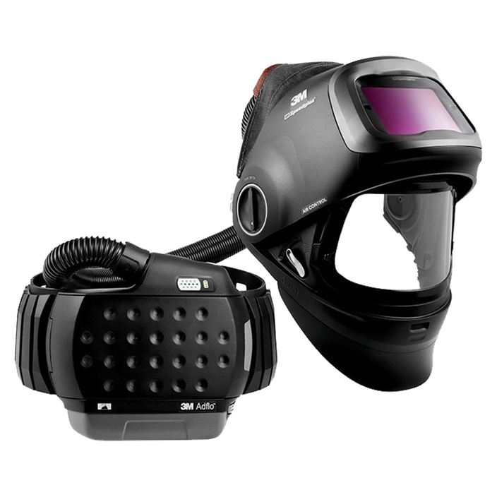 De 3M Speedglas G5-01 lashelm met Adflo motorunit beschermt het hoofd en zorgt voor een constante toestroom van gefilterde lucht.