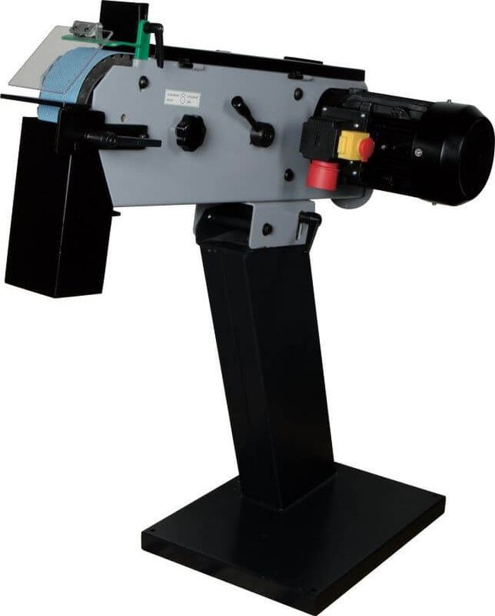 Bandschuurmachine met eenvoudig instelbare steun, om zodoende de optimale slijphoek te vinden. Krachtige motor. Oogschild van onbreekbaar lexaan. De hoek van de machine is traploos te bepalen. Vervolgens dubbele klemming aan weerszijden zodat de werkhoek niet kan wijzigen. Voorzien van afzuigmond.