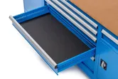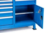 Deze hoogwaardige kwaliteit werkbank is zeer geschikt voor het inrichten van garage of werkplaats. Uw gereedschap en apparatuur kan er overzichtelijk en geordend in bewaard worden en is altijd binnen handbereik. Dit model is 2200 cm breed en voorzien van een onderstel met zeven schuifladen en twee kasten. Afsluitbaar met sleutels. Het werkblad van 25 mm dik MDF zorgt voor een degelijke werkplek. Veel gebruikt op werkplekken zoals montage, service, onderhoud, productie, R&D etc