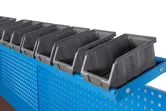De werktafel K3260 wordt standaard geleverd inclusief gereedschapswand, bakjes en ladekast. Het werkblad en de bodemplaat zijn beiden van MDF. Met behulp van onze universele houders en haken kun je diverse gereedschappen en materialen aan de gereedschapswand bevestigen. Zodoende heb je de juiste gereedschappen altijd voor het grijpen tijdens je werkzaamheden. Op het bovenblad kun je diverse zware werkzaamheden uitvoeren, dankzij de stevige MDF plaat, de stalen constructie én de versteviging profielen. Op de bodemplaat kun je tot 150 kg aan materiaal neerleggen, zodat het niet in de weg ligt op het werkblad of los op de grond. De doordachte diepere positionering van de bodemplaat zorgt ervoor dat staand werken aan de tafel geen probleem is. De werkbank is in hoogte verstelbaar én afgewerkt met rubberen voetjes, wat krassen op de vloer tegen gaat. De lades in het ladeblok hebben diverse hoogtes om de opslagmogelijkheden divers te houden. Deze laden hebben een draagcapaciteit van 80 kg, De lades zijn voorzien van anti-slip mat én ladeverdeling. Het ladeblok kan centraal worden vergrendeld met sleutel.