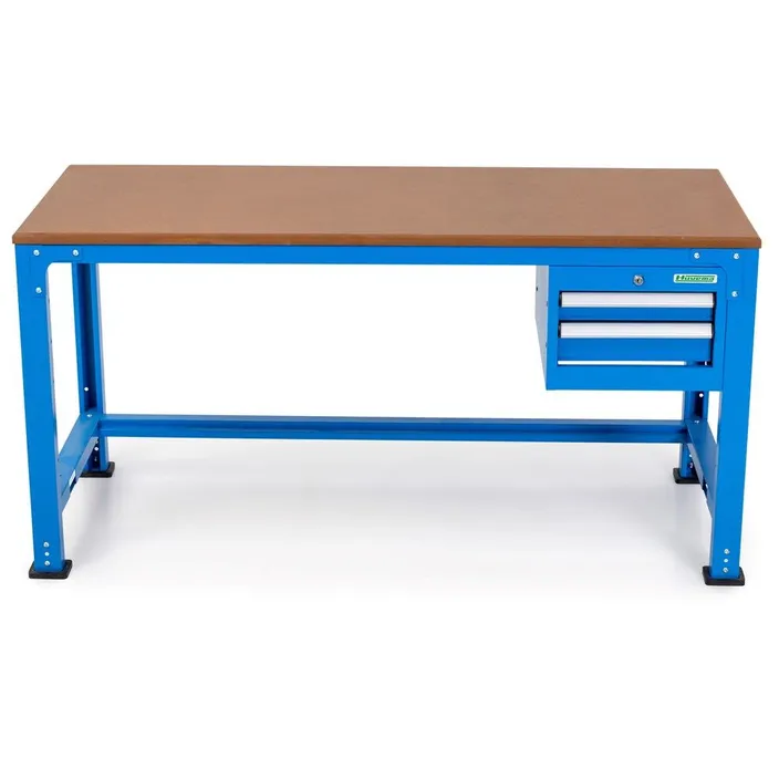Deze middelgrote werkbank met twee laden biedt je een efficiënte en praktische werkomgeving. in je werkplaats. Door de robuuste constructie van plaatstaal is de werktafel jarenlang geschikt voor gebruik en opbergen van je gereedschap en gereedschappen in je werkplaats, TD, magazijn, productie-omgeving, R&D, winkel etc. Het tafelblad kan optioneel naar keuze worden voorzien van een 2 mm zwarte pvc, gegalvaniseerde plaat of roestvrij stalen plaat.