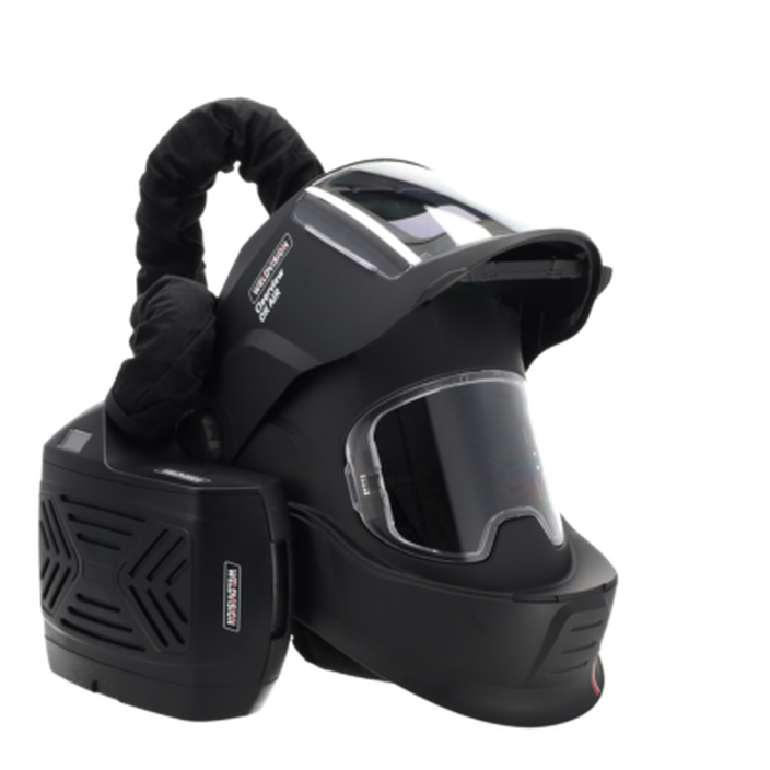 | Geïntegreerd verse-luchtsysteem (PAPR) levert continu gefilterde schone lucht en beschermt de gebruiker tegen schadelijke lasdampen en deeltjes. |