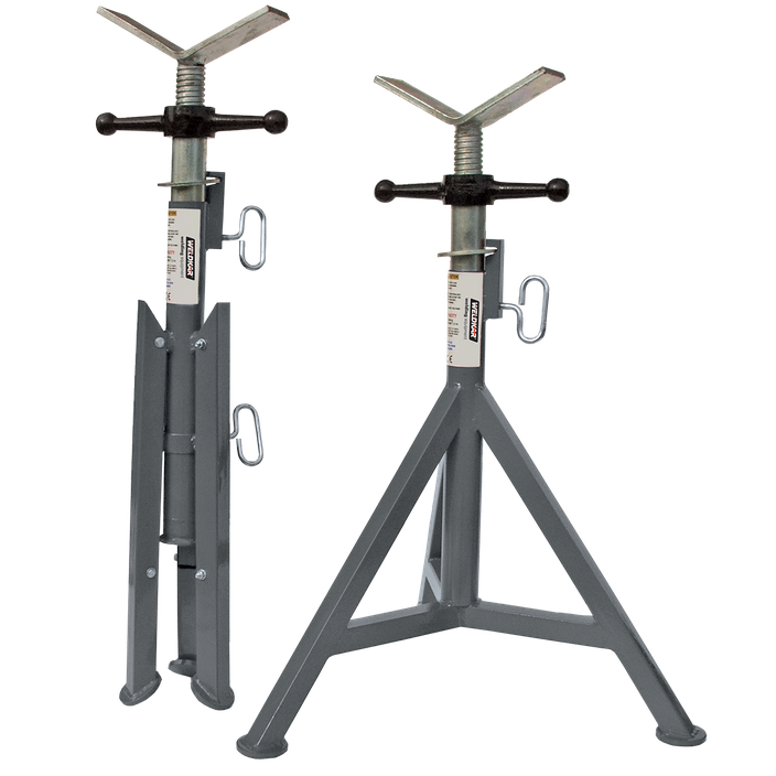 De Weldkar Pijpsteun WK vast Tri Stand met V-kop is een robuuste en verstelbare pijpsteun (ook wel pijpbok) ontworpen om buizen en profielen veilig te ondersteunen tijdens werkzaamheden zoals lassen, monteren of uitlijnen. Hij heeft een driepoot-constructie, is in hoogte verstelbaar en wordt standaard geleverd met een V-kop voor stabiele ondersteuning van ronde objecten.